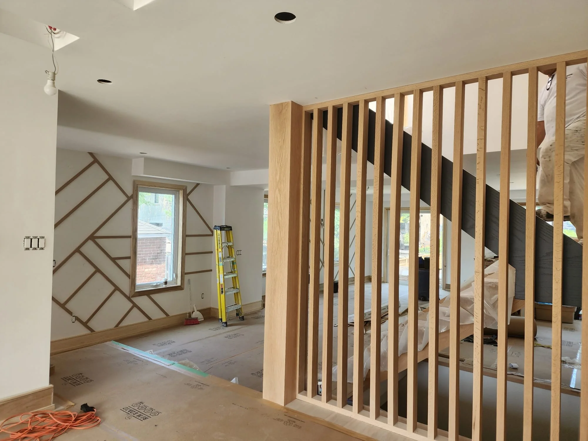 Open-Concept Main Floor + Custom Stair Slat Divider